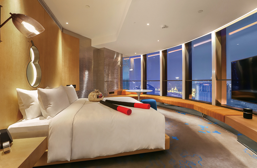 上海W酒店摒棄了傳統(tǒng)的大堂吧,Check-in的地方設(shè)置在酒店的4樓,并且非常大膽地運(yùn)用了開(kāi)放式的格局。設(shè)計(jì)師在大堂處開(kāi)了天井,也是非常符合上海弄堂元素的自然采光設(shè)計(jì)。當(dāng)然,即便有了自然采光,燈光的運(yùn)用依舊不能少,巧妙應(yīng)用了PLANA系列筒燈,遮光角大于40°,良好的防眩光保護(hù)使人幾乎察覺(jué)不到筒燈的存在。