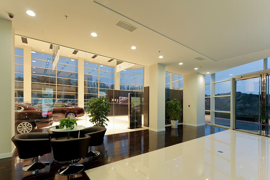 除了建筑的軒昂形象,由WAC提供的精密多頭射燈為展廳營(yíng)造了美觀而又實(shí)用的光環(huán)境效果??紤]到4S展 館建筑面積較大,同時(shí)展館又承載著展示、銷售、休憩和辦公等多種功能,故照明設(shè)計(jì)也相應(yīng)的針對(duì)商品、顧客和內(nèi)部行政等多方需求展開了合理規(guī)劃——針對(duì)商品,讓照明成為“不說(shuō)話的營(yíng)業(yè)員”,借助燈光的照射,增強(qiáng)展車的色彩與質(zhì)感、特征與細(xì)節(jié),配合捷豹路虎的品牌文化,使其內(nèi)涵得以詮釋,變得更具魅力。進(jìn)而引導(dǎo)消 費(fèi)者的目光,通過(guò)視覺營(yíng)銷強(qiáng)化顧客的購(gòu)買意愿。針對(duì)顧客,營(yíng)造良好的商業(yè)氛圍和舒適的視覺環(huán)境,利用燈光起到引導(dǎo)的作用,借助亮度、色調(diào)的反差,吸引顧客的注意力,使其獲得心理上的欣快感,進(jìn)而對(duì)中意車款產(chǎn)生美好印象,做出購(gòu)買的決定。