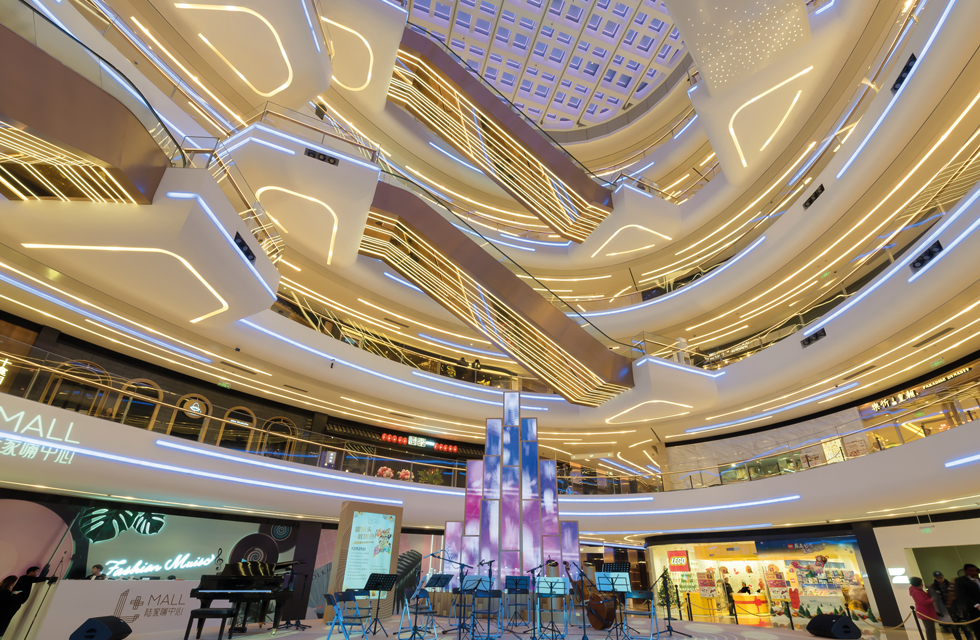 現(xiàn)代商業(yè)中心的燈光設計已遠遠不止是一個個燈具展示發(fā)光的過程,而是營造一個舒適、悠閑的商業(yè)環(huán) 境。當我們一邊在商店內選擇自己所需求的物品,一邊體驗那種安逸與悠然的氛圍,一種忘我的魔力與激情便油然而生。而所有這些感受都已經融入到全新開放的長安萬科商場之中。