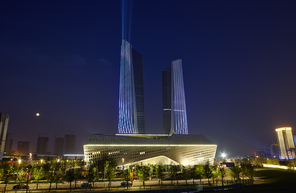 南京青奧中心位于南京市建鄴區(qū)江山大街北側(cè),由雙子塔和會議中心三部分組成,是五星級酒店、甲級寫字樓及會議中心的多功能高端商業(yè)綜合體,也是“解構(gòu)主義大師”扎哈哈迪德的最新力作。