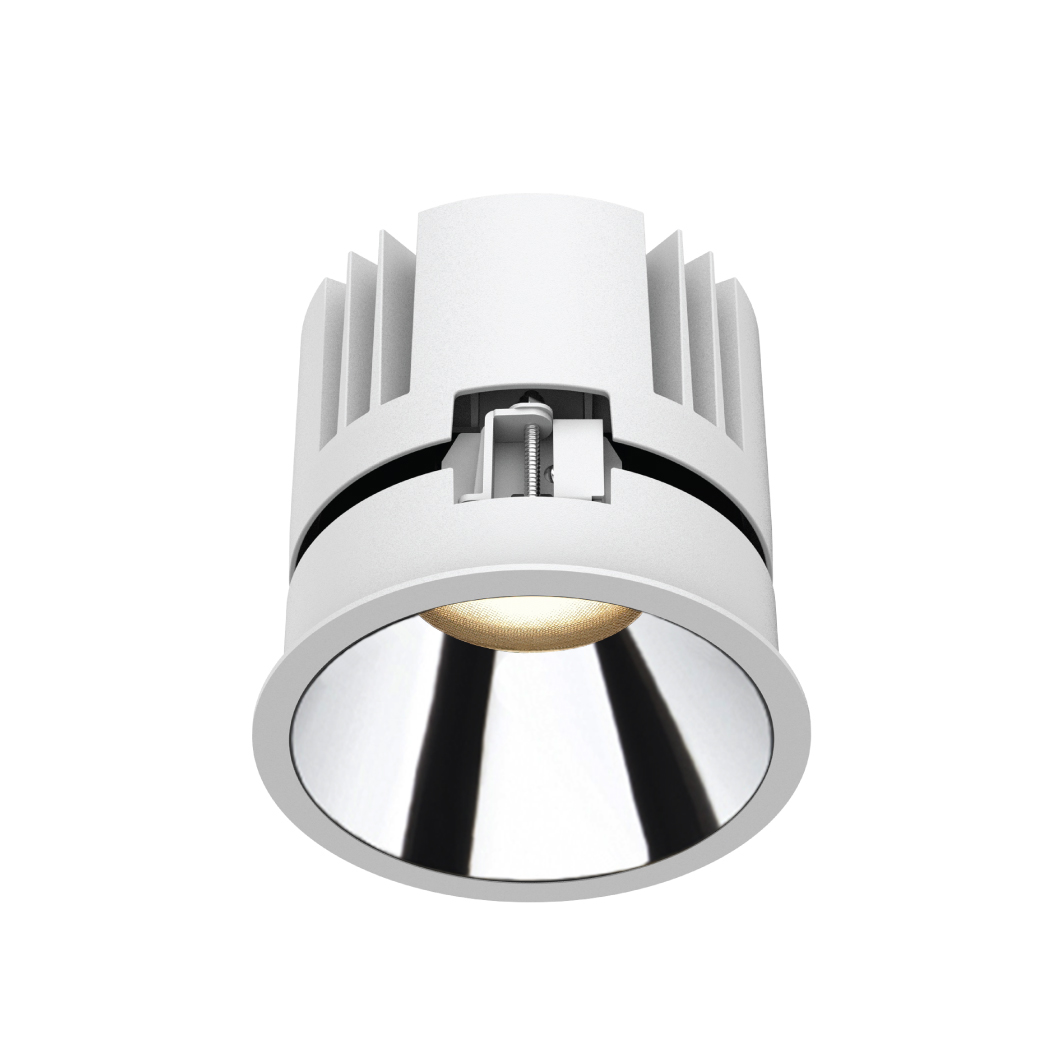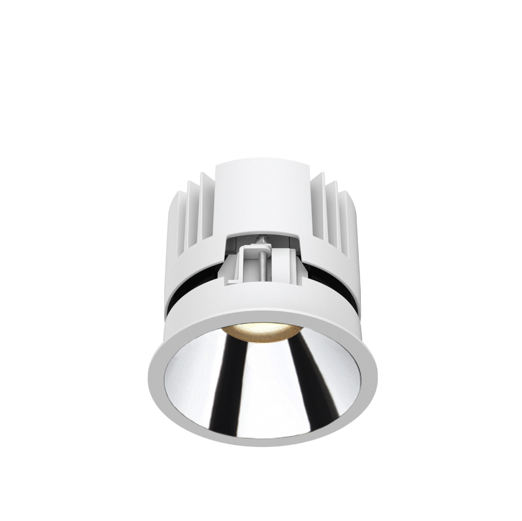 圓形窄邊嵌入式下照筒燈,流線型外觀,精準(zhǔn)的透鏡和黑鏡反射器設(shè)計(jì),保證出光的同時(shí)仍能達(dá)到極致的防眩效果。封密式光源腔,最大程度減少潮濕環(huán)境對(duì)其性能的影響??勺杂刹鹦恫⒏鼡Q反射器或光學(xué)配件,極大的提高了現(xiàn)場(chǎng)的便利性。