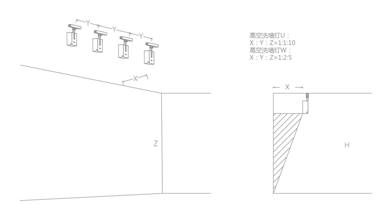 除常規(guī)的洗墻配光外,WAC特別為高空間場所特別研發(fā)兩種洗墻配光
