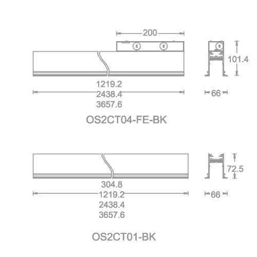 OS2CT04-FE OS2CT08-FE OS2CT12-FE | 04 1.22M Trim Recessed Feed End 08 2.44M Trim Recessed Feed End 12 3.66M Trim Recessed Feed End | Required Power FeedRun Connected Power Uniy Require SEE CPU(sold separately) | BK Black WT White |