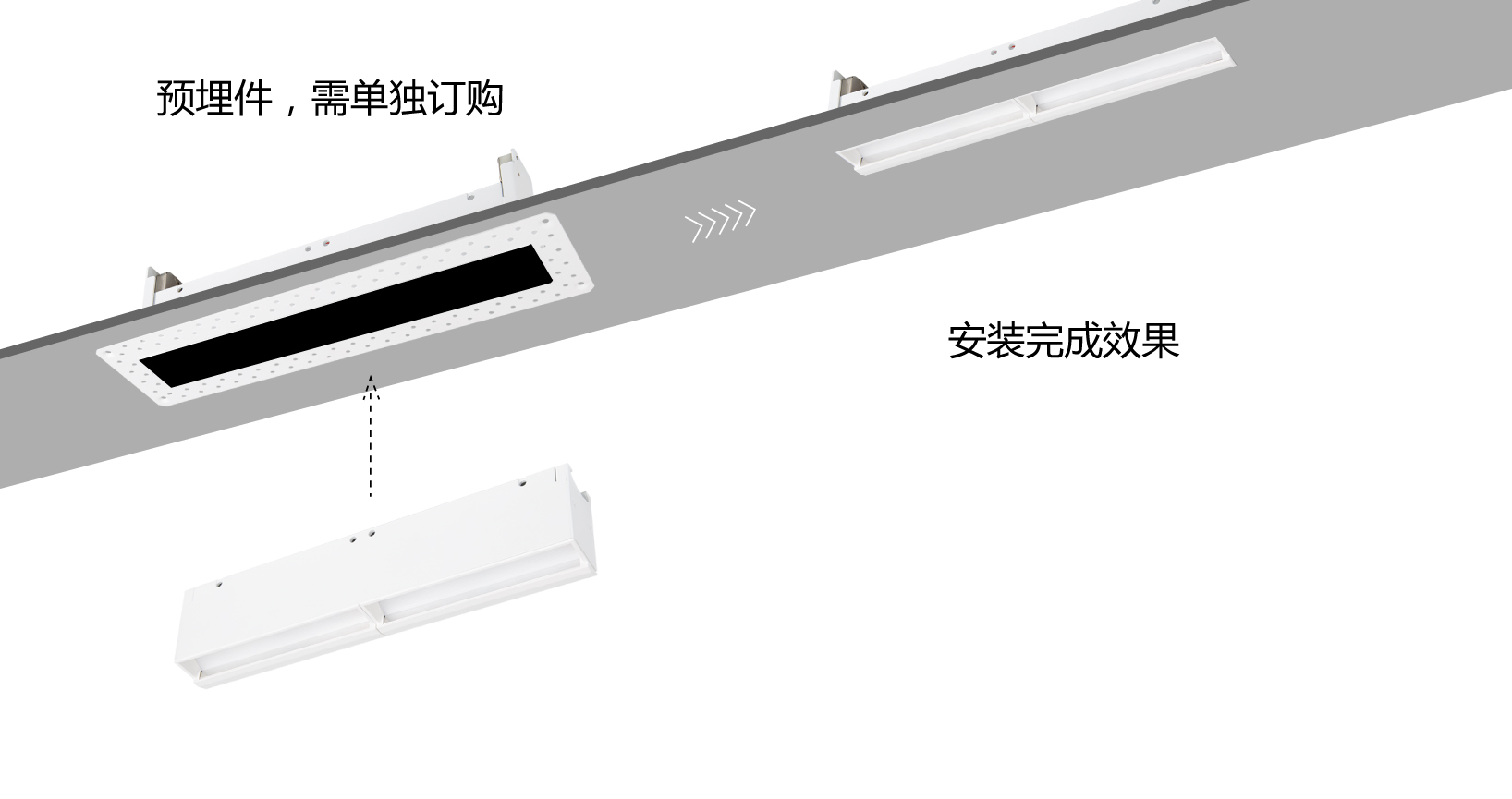 LIGNE PRO 嵌入式線性洗墻燈具,使用鋁型材燈體,外觀簡潔大氣美觀. 使用 LED 光源,高光效,高顯指。采用獨創(chuàng)光學(xué)系統(tǒng),確保墻頂無暗區(qū),均勻洗墻,同時具有良好的防眩效果。主要適用于公共空間、商業(yè),辦公、展示照明等場所的照明應(yīng)用。