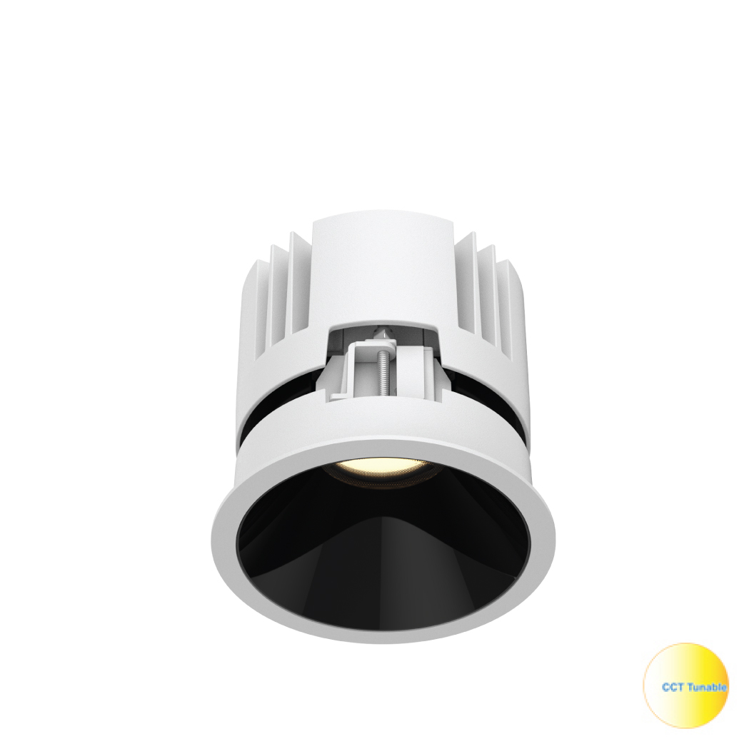 圓形窄邊嵌入式下照筒燈,流線型外觀,精準(zhǔn)的透鏡和黑鏡反射器設(shè)計(jì),保證出光的同時(shí)仍能達(dá)到極致的防眩效果。封密式光源腔,最大程度減少潮濕環(huán)境對(duì)其性能的影響??勺杂刹鹦恫⒏鼡Q反射器或光學(xué)配件,極大的提高了現(xiàn)場(chǎng)的便利性。