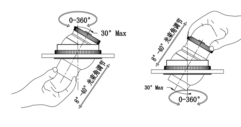 創(chuàng)造性的采用了專利結(jié)構(gòu)設(shè)計,可同時支持從前面或從后面進(jìn)行調(diào)焦操作(一燈兩用)