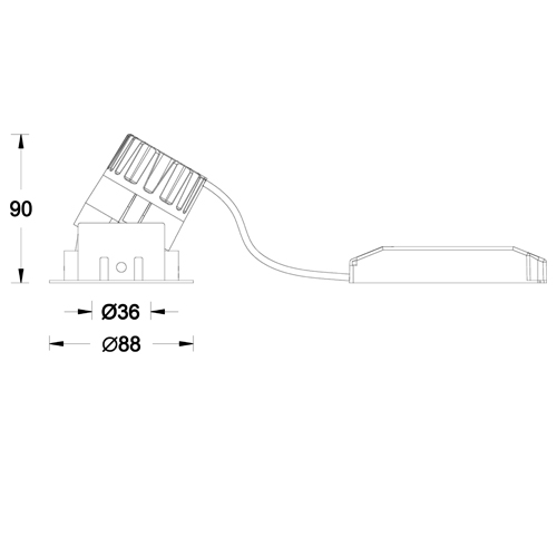 DDF Downlight Directional F series | 3 3” | 5 Square Trim | LM07 COB 7W LM10 COB 10W | E On-Off D 0-10V Dimming | 2 24° 3 38° | 27 2700K 30 3000K 40 4000K | B Black | WT White |