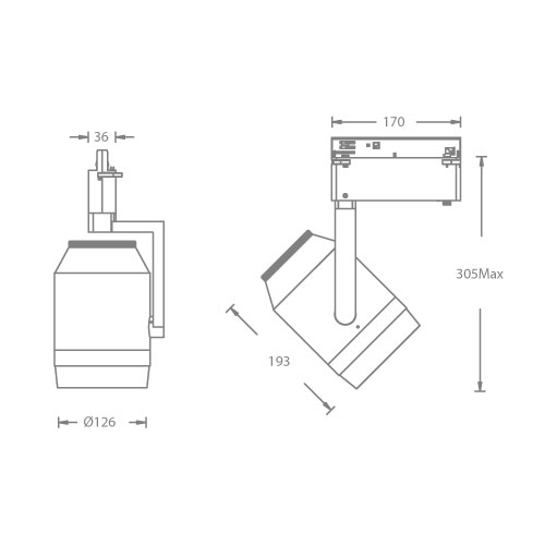 TL54F PALOMA Focus | LM32 COB 32W | O On-board D 0-10V Dimming | F 12° ~ 60° | A 97 9 90 | 30 3000K 40 4000K | WT White BK Black PT Platinum |