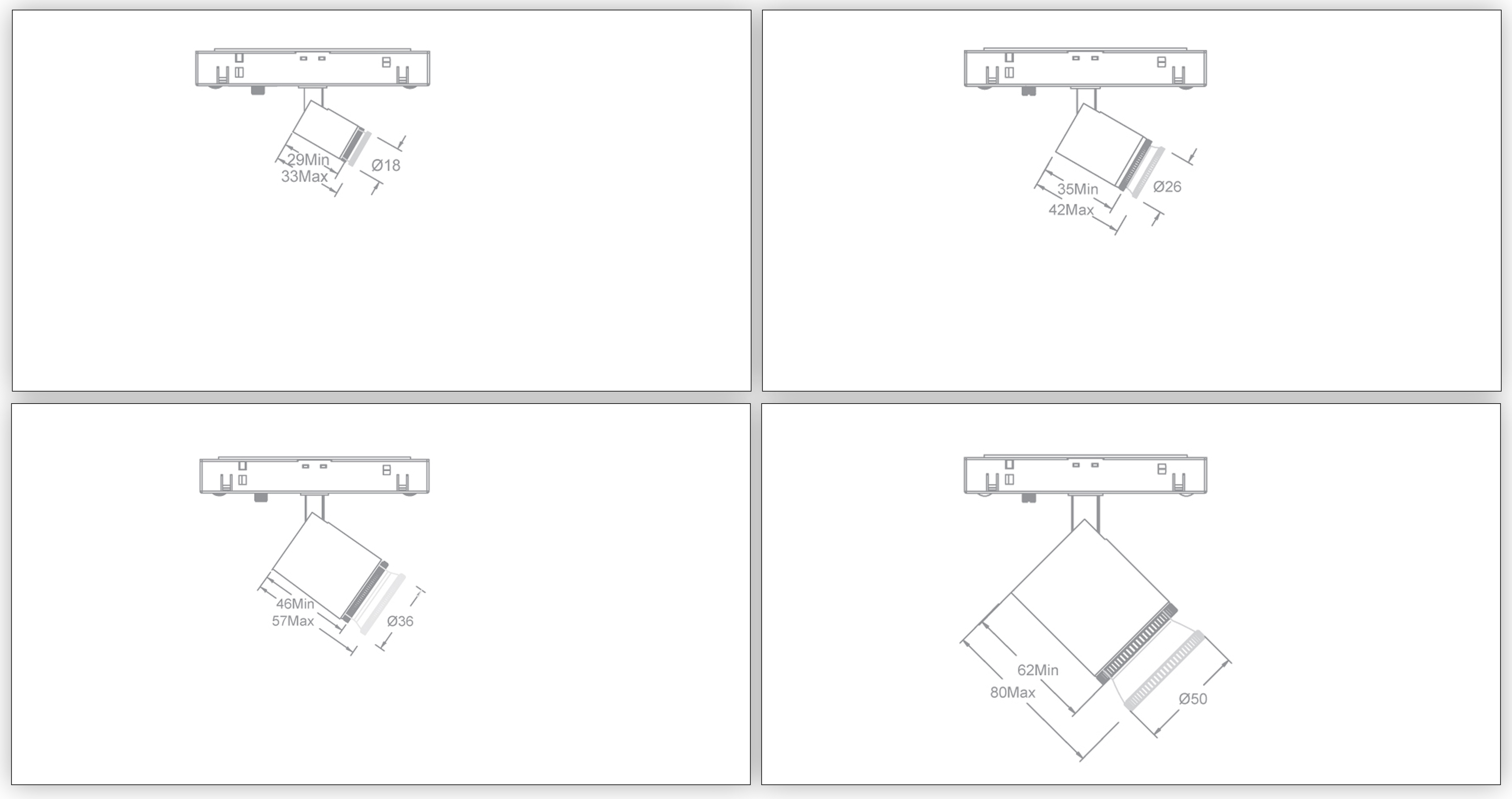 SL45F/SL46F/SL47F/SL48F 尺寸詳情,系列提供直徑18mm、26mm、36mm以及50mm選擇,同時,可以通過旋轉面框實現(xiàn)光束角調(diào)節(jié)。