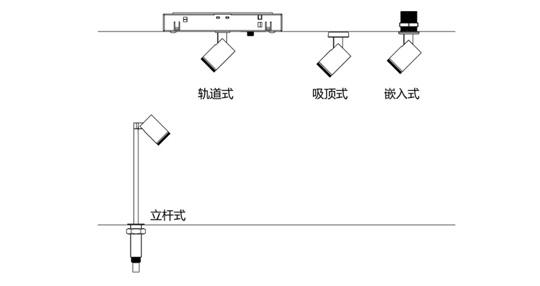 Ocularc 系列提供三種安裝方式,軌道式、明裝式(吸頂&嵌入)以及立桿式,滿足多樣安裝場合需求。
