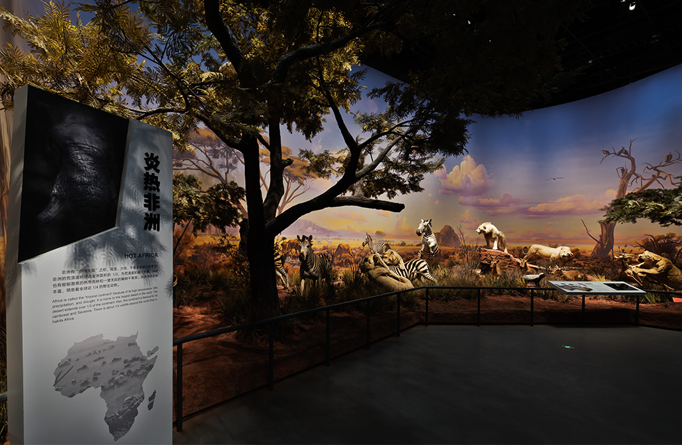 貝林館有非常多的場景展示,其中涉及大面積洗墻以及動(dòng)物與樹木的重點(diǎn)照明展示等等。 這些場景設(shè)計(jì)中,主要還是采用Graze線性洗墻燈具作洗墻照明,色溫以暖白色為主,凸顯非洲、美洲草原炎熱的大環(huán)境,用Swallow 窄、中光束軌道射燈,投射動(dòng)物的頭部或其他身體部位,突顯每個(gè)動(dòng)物的棲息神態(tài),用中、寬光束軌道射燈烘托動(dòng)物之間的整體氛圍。
