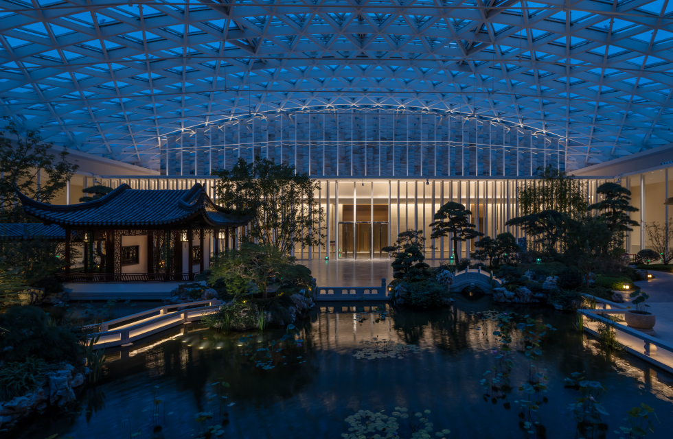 蘇園入口處,PANTHER 投光燈裝點(diǎn)樹影,引導(dǎo)觀眾進(jìn)入充滿中式意蘊(yùn)的園林,步入蘇園內(nèi)部,柔性 InvisiLED NEON 燈帶緊密貼合石橋輪廓,水下燈打造柔和光影,相互鋪就一條靈動的光影動線。