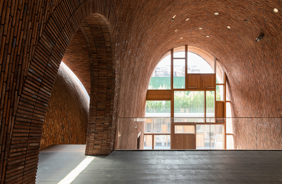 “你要問瓷器從哪里來?它一定說我從柴窯里來。你要問磚想做什么?它一定說我想變成拱券?!苯ㄖ熤祜聫拇筛G中找到了景德鎮(zhèn)最具代表性的建筑材料:磚,又從柴窯中發(fā)現(xiàn)了景德鎮(zhèn)最自然的建筑結(jié)構(gòu):拱券,利用景德鎮(zhèn)建窯所用的傳統(tǒng)攣窯手藝,建造出了景德鎮(zhèn)御窯博物館這樣一座建筑。