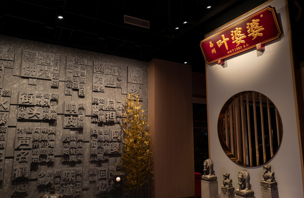撲面而來的中式牌匾,比肩而立古樸石像,配合重點(diǎn)照明的方式,進(jìn)一步強(qiáng)化品牌形象,創(chuàng)造視覺焦點(diǎn),確立了空間的層次和餐廳的環(huán)境基調(diào);利用WAC 博物館級專業(yè)軌道燈具Swallow Wall Wash與Reflex相結(jié)合,打造了獨(dú)特、令人印象深刻的照明氛圍,使顧客對品牌及品牌文化有了深刻的記憶。