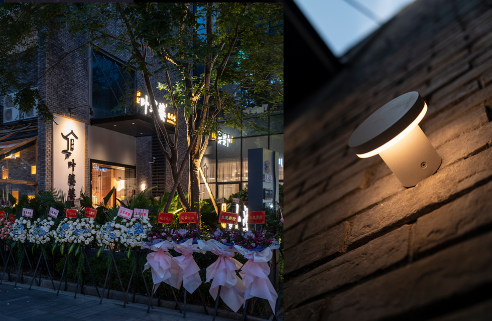 Panther Adjustable Wash 柔和的光斑,如天邊月光灑落,似故鄉(xiāng)燈火搖曳,創(chuàng)造了更貼近品牌形象的視覺印象,配合WAC獨(dú)具特色的Mushroom壁燈,增加室外空間的生趣,造型簡約,光暈柔和,既點(diǎn)綴空間,又增加對于來往食客的視覺吸引。
