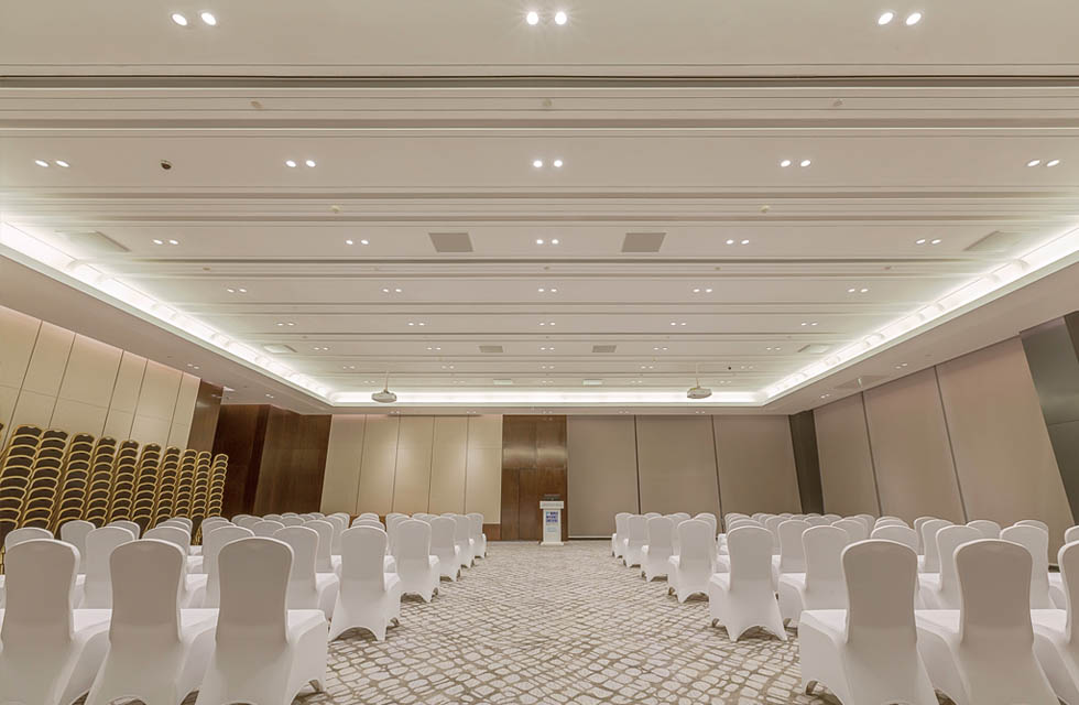 為了保證使用感受高效舒適,會議室中所有的裝飾裝修性設(shè)備在選擇時要求都十分嚴(yán)格,而燈具設(shè)備方面,WAC Lighting以領(lǐng)先于行業(yè)的前沿技術(shù)產(chǎn)品征服了室內(nèi)照明設(shè)計師。會議中心大量使用了由WAC提供的燈具設(shè)備,比如主會場主席臺上空選用了SLANA明裝筒燈系列;主會場入口、會議中心一層二層通道走廊、會議中心一層、二層各類會議室均使用了PLANA筒燈系列;入口天棚用的是LANNE 嵌入式防水筒燈系列;主會場及其他會議室的燈光勾勒都是WAC燈帶呈現(xiàn)的效果。