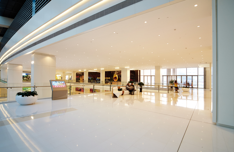 嵌入式的安裝結(jié)構(gòu)保持了燈具與建筑天花的一體,不會因?yàn)闊艟叩脑O(shè)置而破壞吊頂?shù)耐昝?。LED燈帶是配合筒燈為商場提供整體照明的另一照明產(chǎn)品組合,被有序地嵌入天花、扶梯、商場結(jié)構(gòu)立柱的線腳內(nèi)不僅配合整體照明也起著空間轉(zhuǎn)換,指引客流的作用。