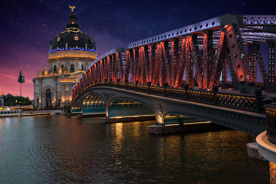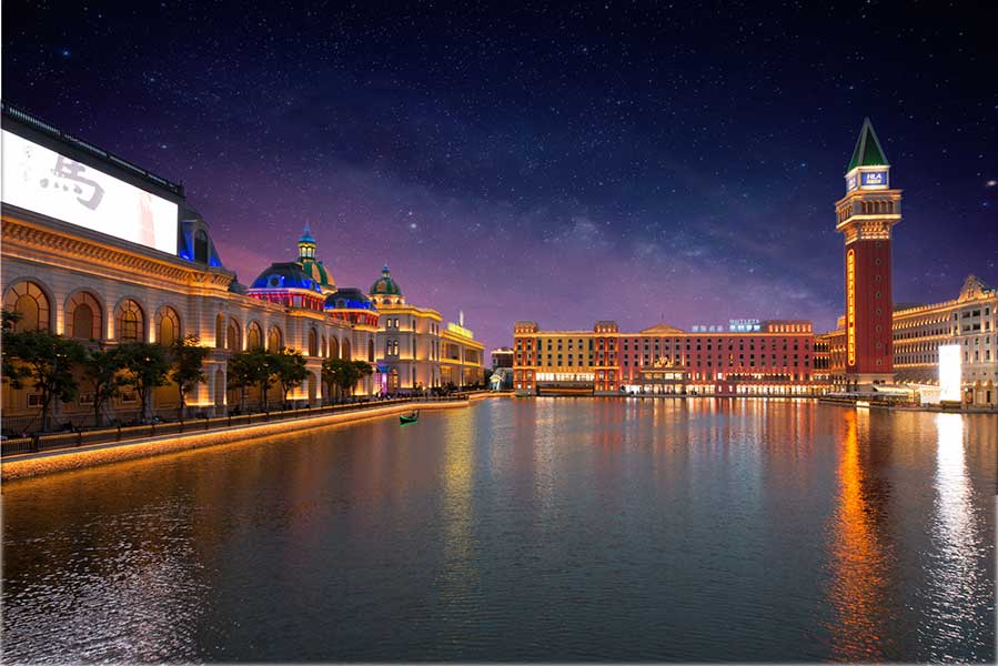 WAC充分發(fā)揮定制化服務(wù)優(yōu)勢,特別定制多款戶外照明燈具,點(diǎn)亮飛馬水城。月色皎皎,水波粼粼,開闊的水域環(huán)繞一幢幢歐式風(fēng)格的建筑、一座座異國風(fēng)情的雕塑,一縷縷五彩斑斕的燈光,徜徉其中,別有一番風(fēng)情。