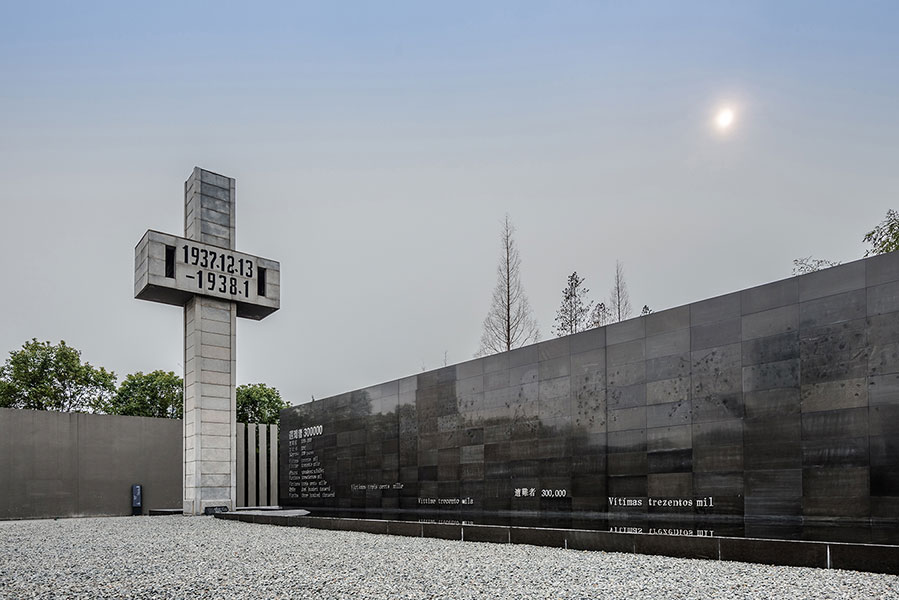南京大屠殺死難同胞紀念館依次從一期建設擴展至三期,都以莊重的灰色調為主,以示對逝者的悼念和尊重。展館內,從史料、文物、建筑、雕塑、影視等多種手法,全面展示“南京大屠殺”特大慘案的專史,無論是農家屋、慰安所,密密地刻著300000多個遇難者的名字“哭墻”,擺放各種沉重資料的書架,還有每隔12秒一滴水落下所意味的一個人死去的“12秒”。