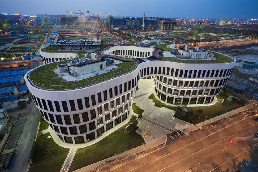 虹橋·協(xié)信中心由10棟甲級花園式總部型辦公集群組成,樓宇之間高低、寬窄、角度各有不同,大、中、小三種供客戶選擇的辦公平面加上五種不同的建筑高度,組成了一個(gè)家庭式的組合變化。