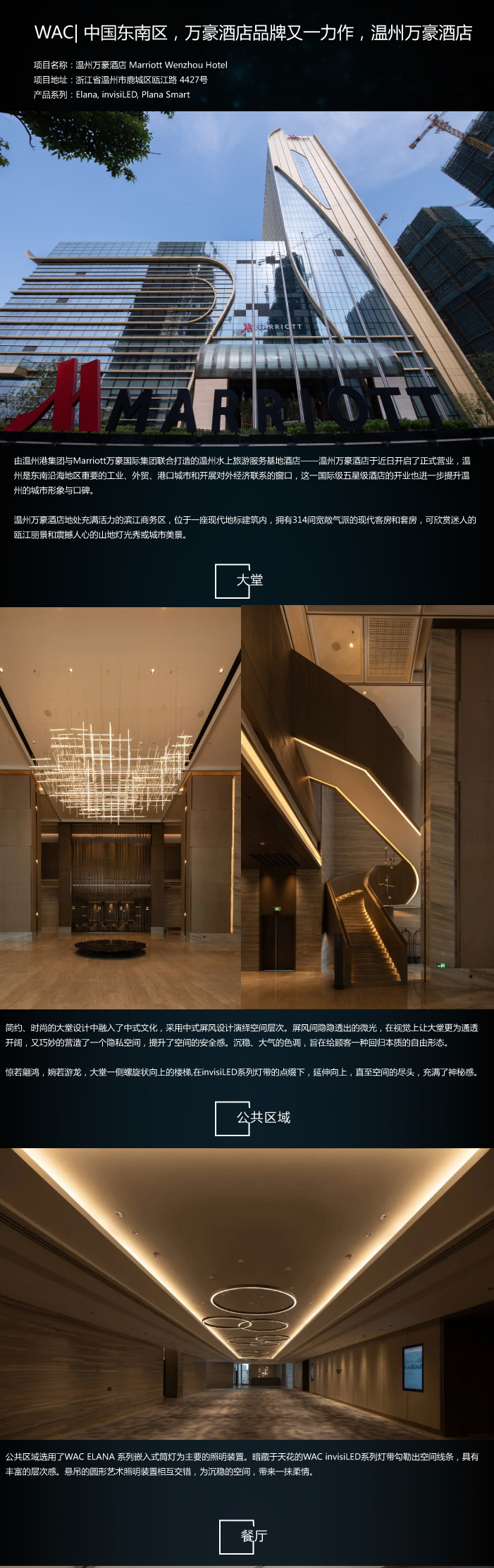 WAC Lighting 1984年成立于紐約,創(chuàng)立以來一直專注于高端照明設(shè)備的研發(fā)與制造,在美國(guó)專業(yè)照明領(lǐng)域享有很高的聲譽(yù)。產(chǎn)品廣泛應(yīng)用于高檔酒店、別墅會(huì)所、博物館、高端商業(yè)地產(chǎn)、展覽展示空間、建筑景觀等眾多領(lǐng)域的室內(nèi)和室外照明,是眾多建筑設(shè)計(jì)師,照明設(shè)計(jì)師選用的專業(yè)級(jí)照明品牌。