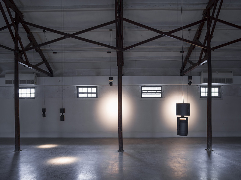 特別為廠房?jī)?nèi)部藝術(shù)展廳量身定制的射燈,在WAC已有的Paloma pro軌道射燈基礎(chǔ)上,加裝可升降收納并以任意姿態(tài)懸停的系統(tǒng),該系統(tǒng)已獲得實(shí)用新型專(zhuān)利。在各廠房?jī)?nèi)部保障藝術(shù)品展示照明的靈活性,同時(shí)呈現(xiàn)原有屋架結(jié)構(gòu)與材質(zhì)肌理之美。每個(gè)展廳的屋架結(jié)構(gòu)各不相同,軌道射燈系統(tǒng)均充分考慮藝術(shù)品照射角度合理、空間視線規(guī)避、調(diào)光與維護(hù)便利。在特別展廳,軌道射燈布置其中,展陳照明在視覺(jué)上不干擾內(nèi)部結(jié)構(gòu),可升降收納并以任意姿態(tài)懸停又實(shí)現(xiàn)了低位展品的照明特寫(xiě)并避免眩光和陰影。在由老廠房改造的展廳內(nèi)部,暗藏在兩側(cè)墻面的線型燈具照亮屋面,用柔和的間接光呈現(xiàn)原有屋架結(jié)構(gòu)。