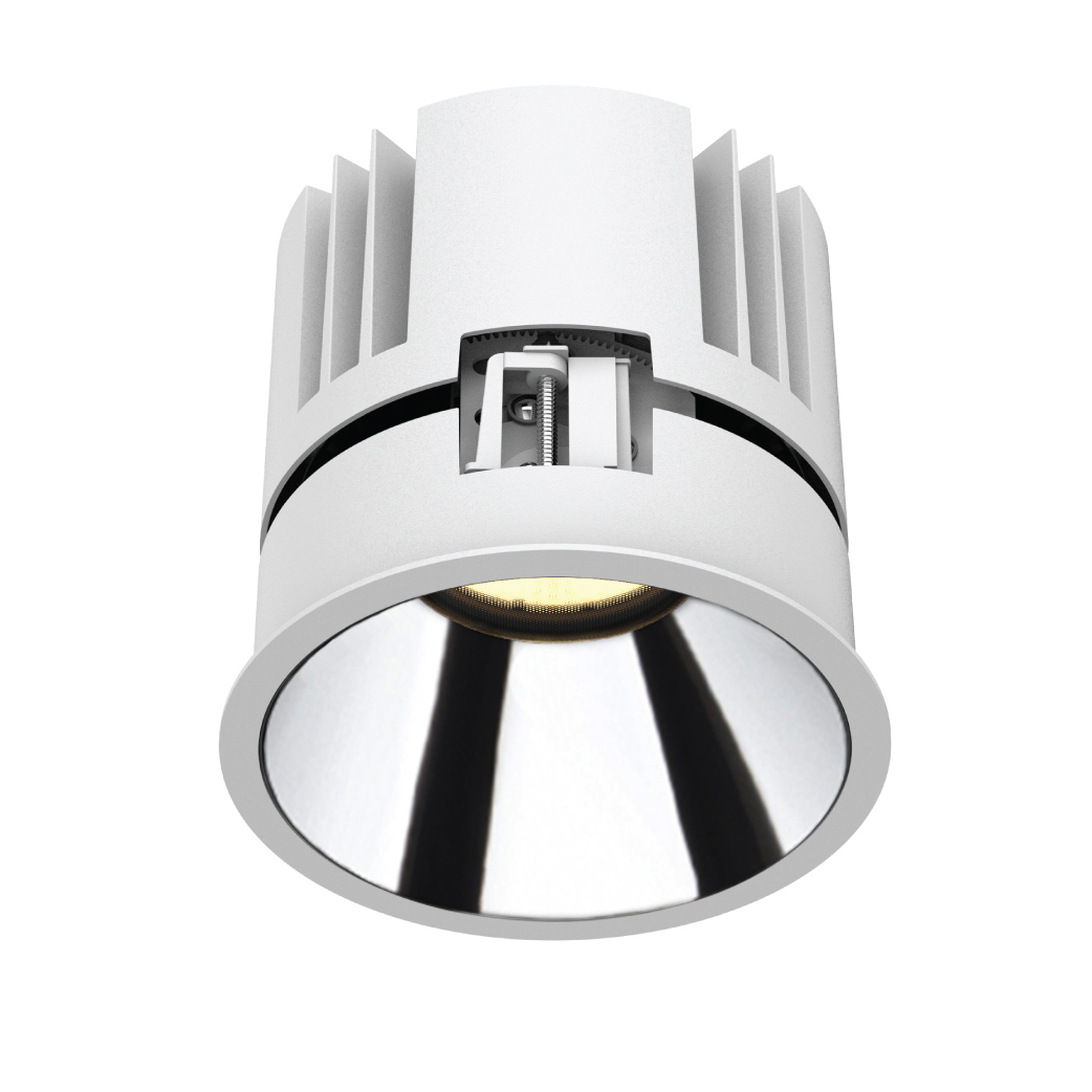 圓形窄邊嵌入式下照筒燈,流線型外觀,精準(zhǔn)的透鏡和黑鏡反射器設(shè)計(jì),保證出光的同時(shí)仍能達(dá)到極致的防眩效果。封密式光源腔,最大程度減少潮濕環(huán)境對(duì)其性能的影響??勺杂刹鹦恫⒏鼡Q反射器或光學(xué)配件,極大的提高了現(xiàn)場(chǎng)的便利性。