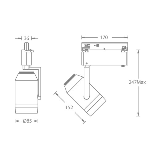 TL54F PALOMA Focus | LM32 COB 32W | O On-board D 0-10V Dimming | F 12° ~ 60° | A 97 9 90 | 30 3000K 40 4000K | WT White BK Black PT Platinum |